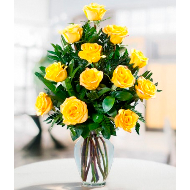 Arreglo De Rosas Amarillas En Florero De Vidrio